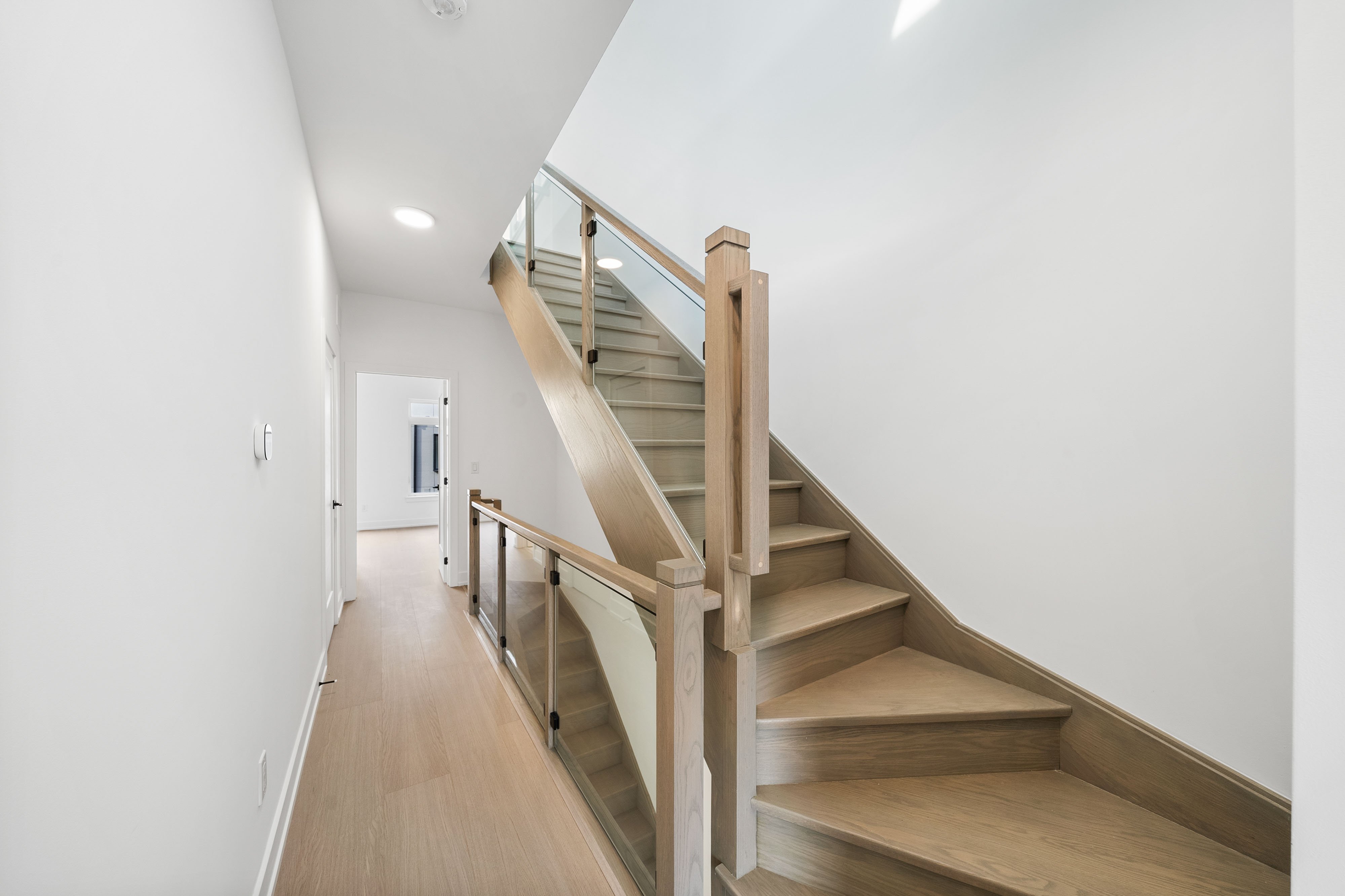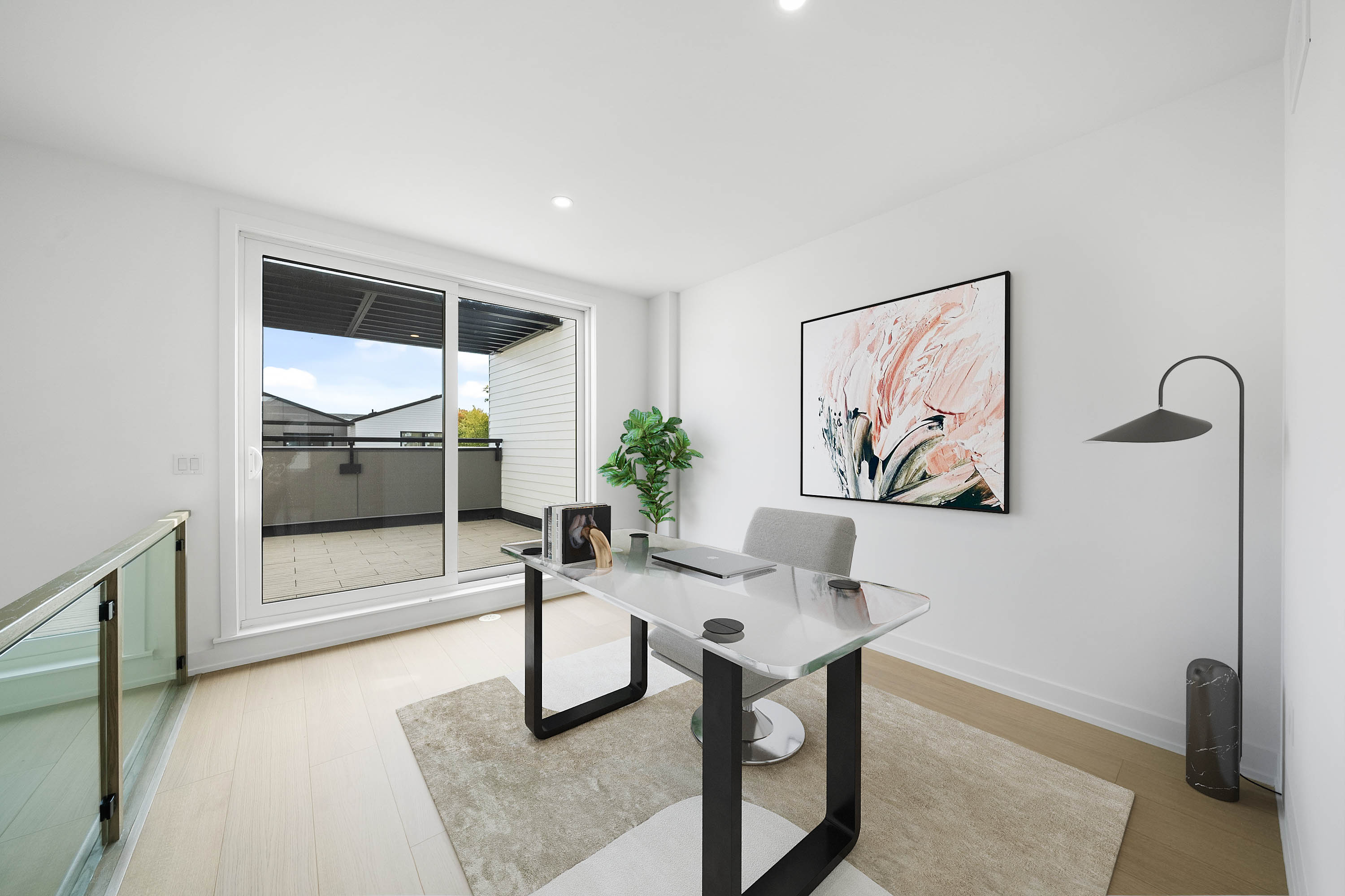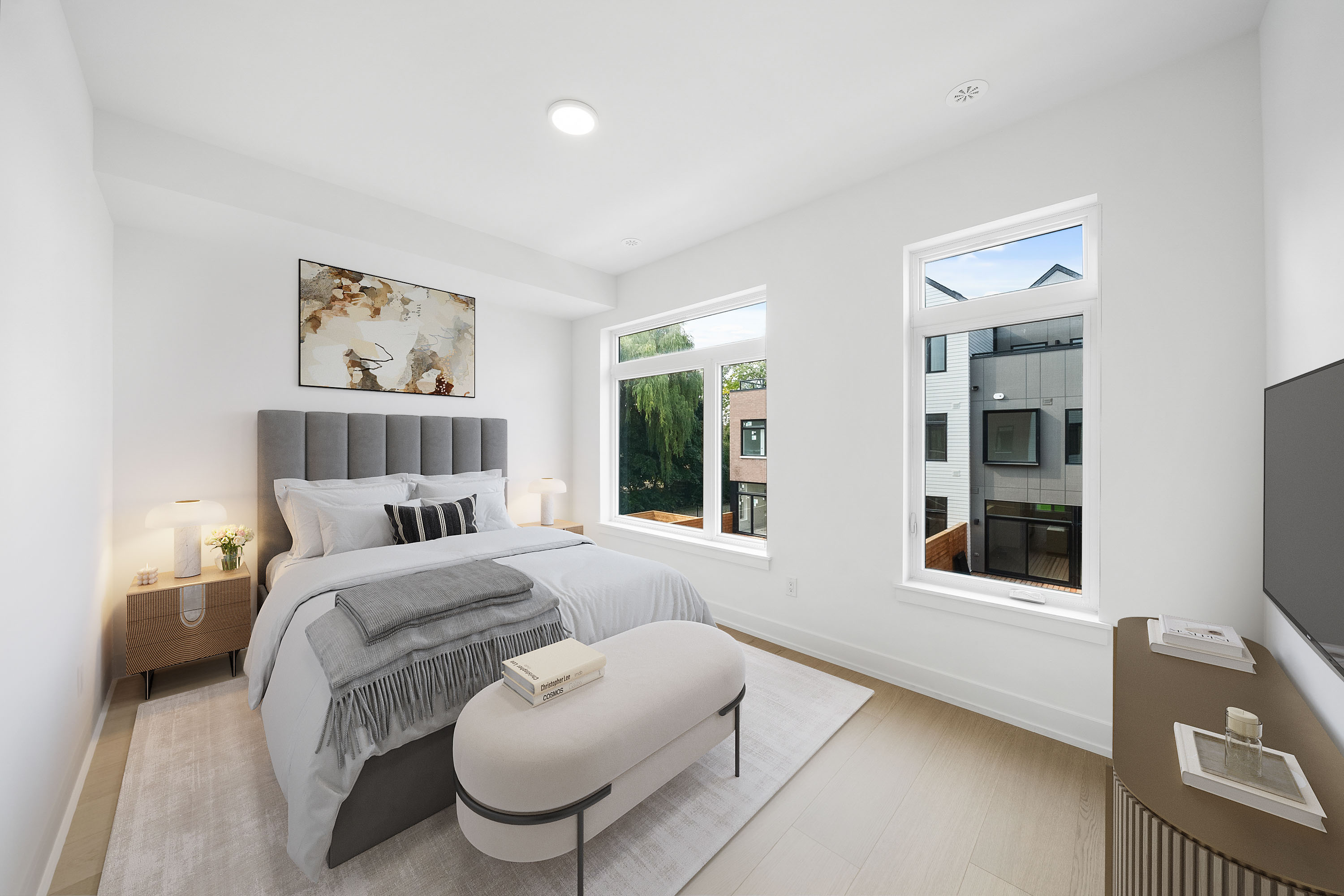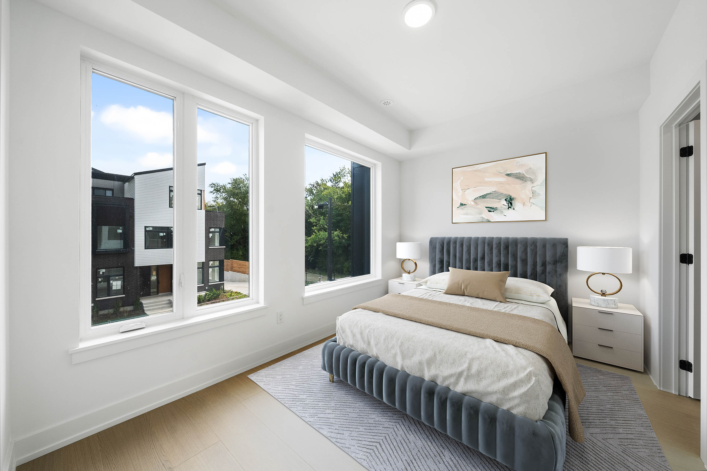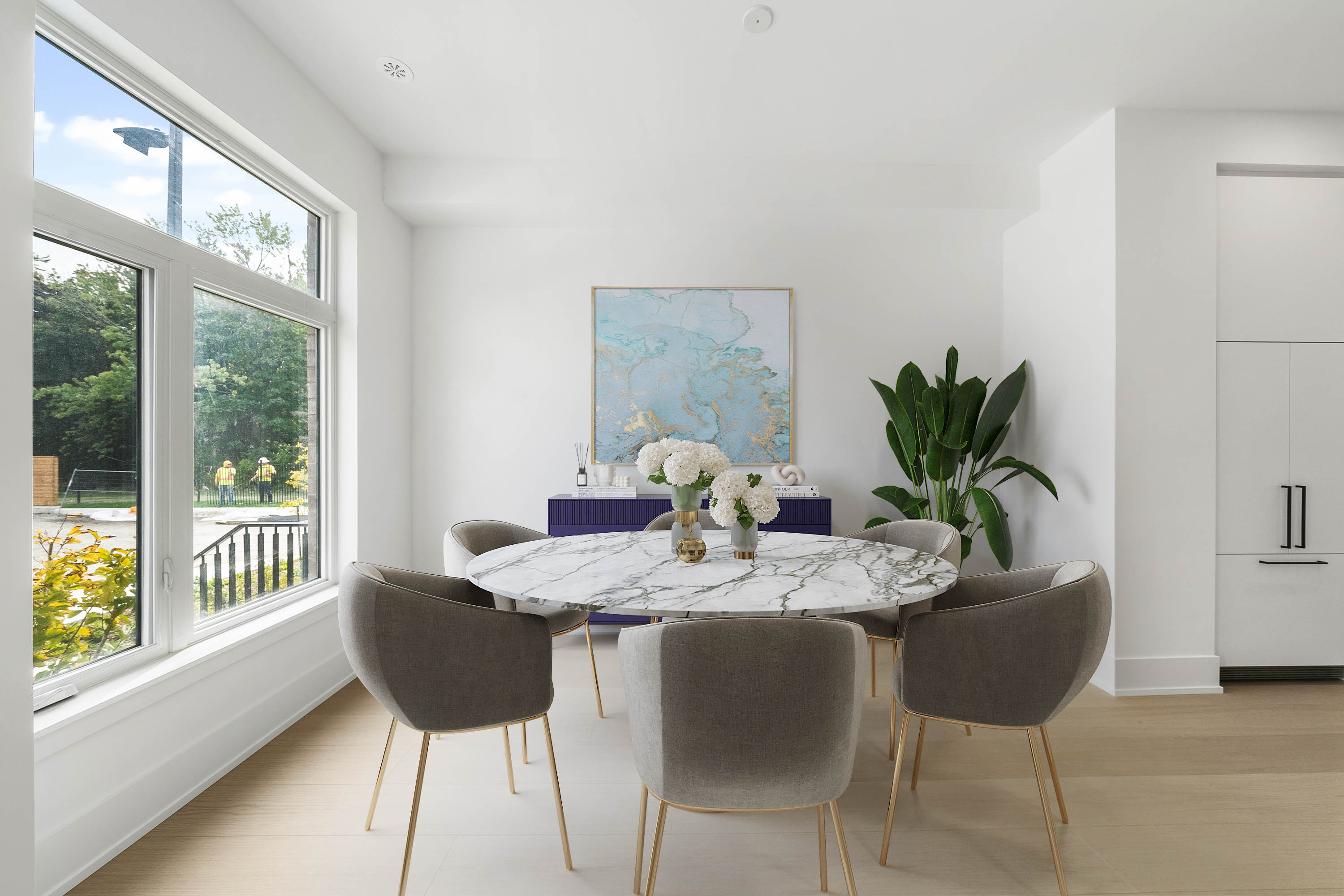 Welcome to lakeside living in this brand-new 3-bedroom + den townhome in Port Credit. Step inside to a cozy foyer w/ convenient closet & powder room. The bright dining room leads to a modern kitchen feat. quartz countertops & waterfall-edge island, premium Bosch and Fisher & Paykel appliances, incl. 5-burner gas cooktop, b/i oven & microwave, and paneled fridge and dishwasher. Features incl. s/s double sink w/ matte black faucet, soft-close cabinets with ample storage and pantry. The living room extends to a private back terrace, perfect for entertaining or relaxing moments. Upstairs, 2 large bedrooms each have their own ensuite and spacious closets. The primary suite boasts a spa-like bathroom with a freestanding tub, tiled shower, and dual-sink vanity. The third floor offers a flexible space that opens to a private rooftop deck with Benson Trail views, plus a third bedroom and bathroom. Thoughtful features & upgrades incl. wide-plank hardwood floors, 10ft ceilings, oversized windows, window coverings, matte-black kitchen & bath fixtures + shower niches, 3-car parking, tandem-garage w/ EV charger connection, gas hookup for BBQ. Access to transit, PC GO shuttle, retail, schools, steps to the lake, parks & trails. Available June 1, 2026.